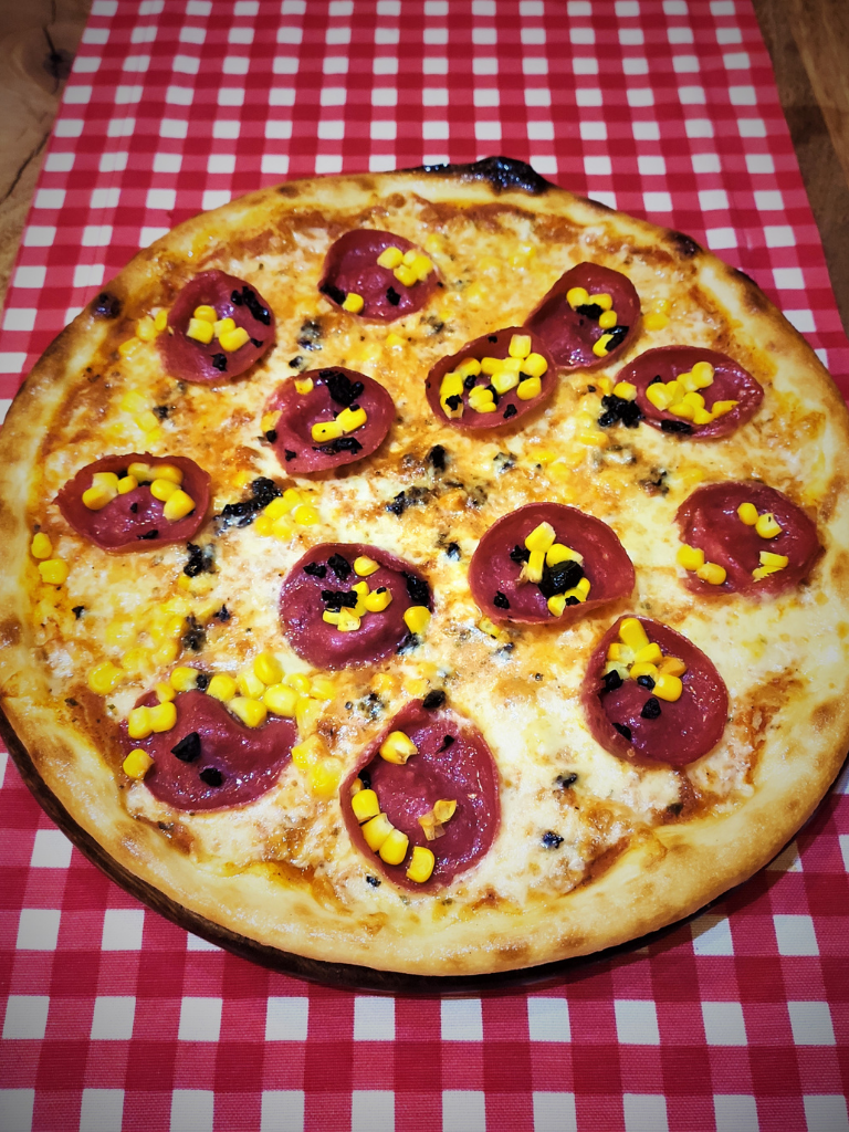 Spizzala Domates Sosu, Mozzarella, Sosis, Köy Biberi, Mısır, Siyah Zeytin